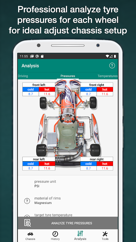 - پریشر کا تجزیہ: آپ کو ہر ٹائر کے گرم اور ٹھنڈے دباؤ، پہیوں کا مواد، ٹائر کا ہدف درجہ حرارت، موجودہ موسم اور ریس ٹریک کے حالات کے بارے میں مطلع کرنا ہوگا۔