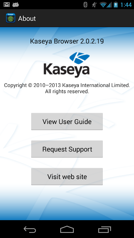 Important: This app requires a corresponding account on a Kaseya BYOD Gateway deployed in your business. Please contact your IT staff for further information.