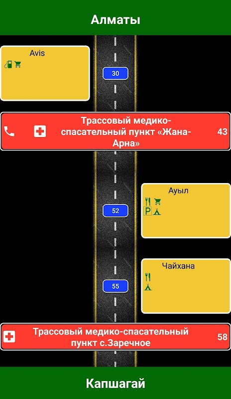 KazWay - мобильное приложение для поиска пунктов придорожного сервиса на дорогах Казахстана.