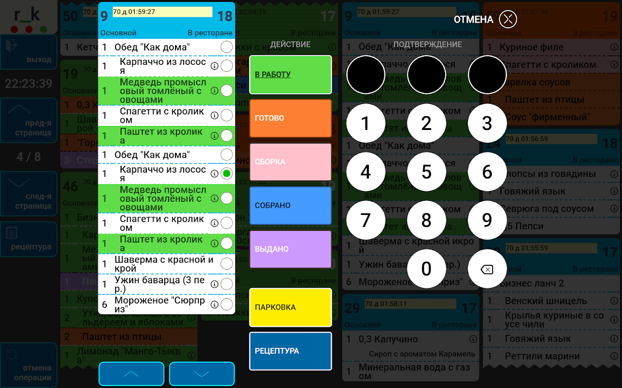 > باورچی خانے ، بار اور ریستوراں کے دوسرے پروڈکشن محکموں کی اسکرینوں پر آرڈرڈ ڈشز کے بارے میں معلومات ظاہر کرنا Display
