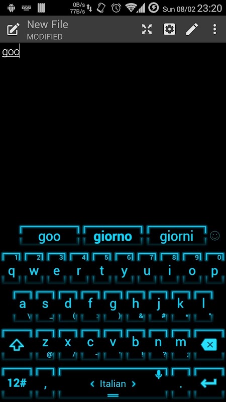 کے پرانے ورژن Keyboard Theme Neon 2 Cyan