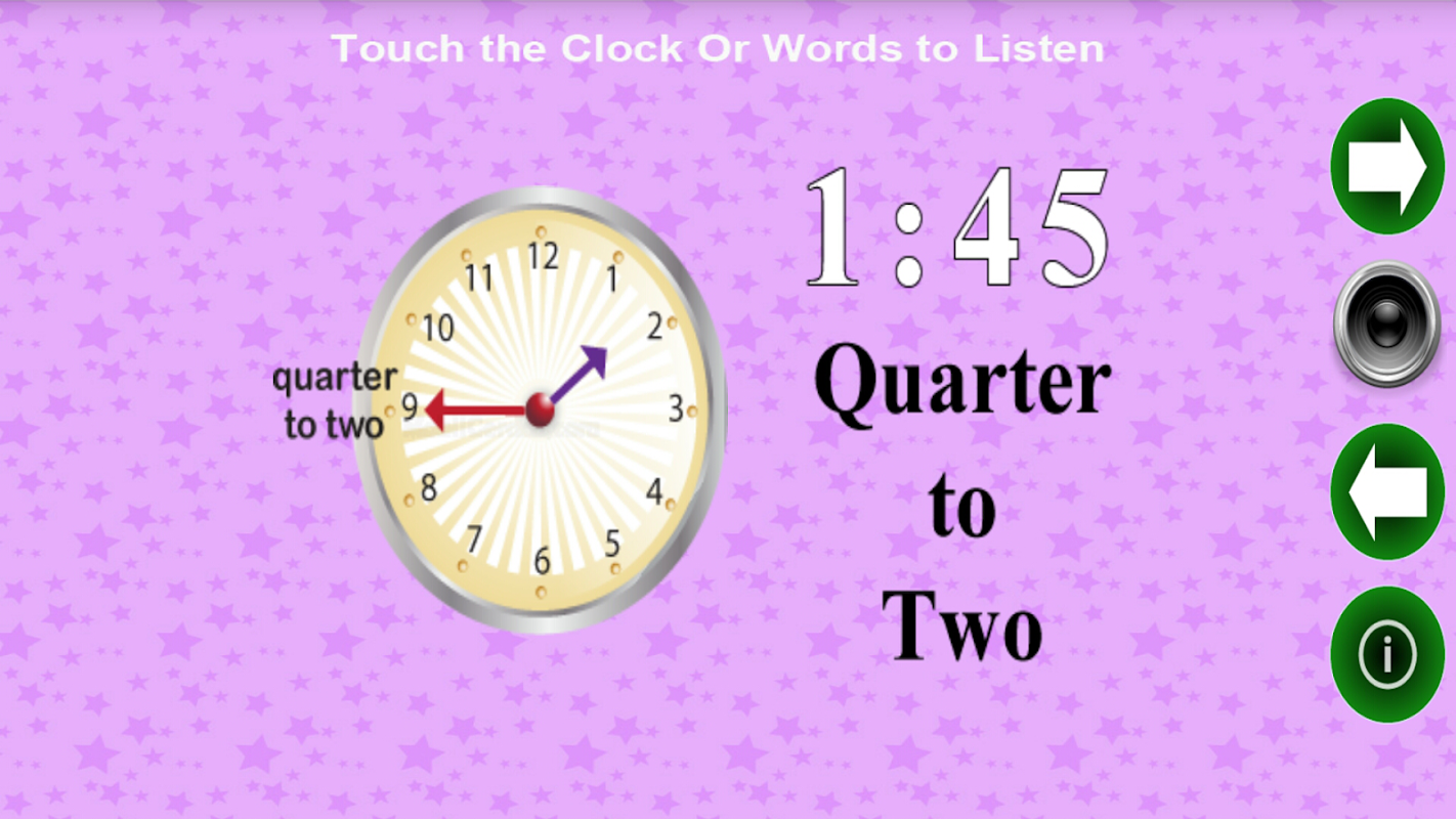 Visually represents analog clock & digital time through pictures. And kids can touch the pictures and words to listen how to say/read it out.