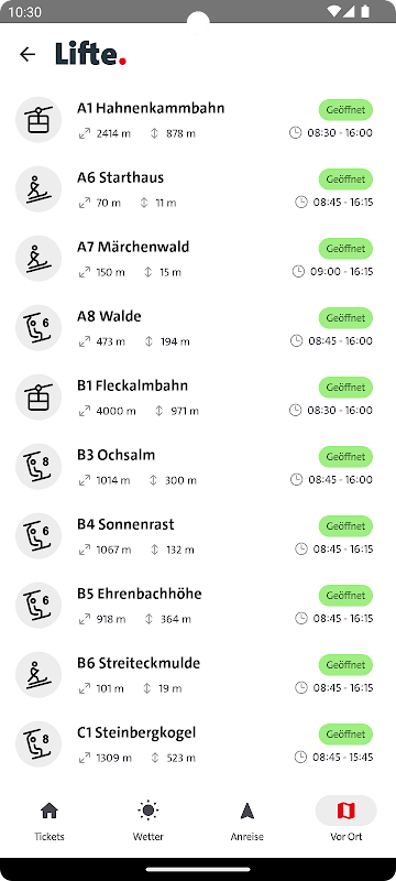 :: آپریٹنگ اوقات کے ساتھ موجودہ لفٹ اور ڈھلوان کی حیثیت