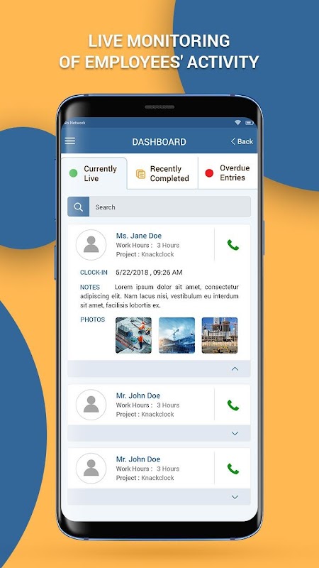 * ایڈمن اور سپروائزر آسانی سے ان ملازمین کی فہرست دیکھ سکتے ہیں جنہوں نے آج کام شروع کیا ہے اور براہ راست تصویروں کے ذریعہ کام کی پیشرفت کی ہے۔