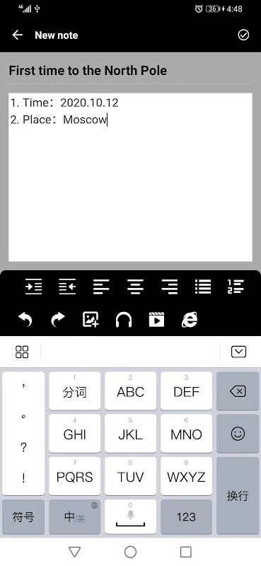 Notes support text, picture, music, video, webpage mixed editing mode