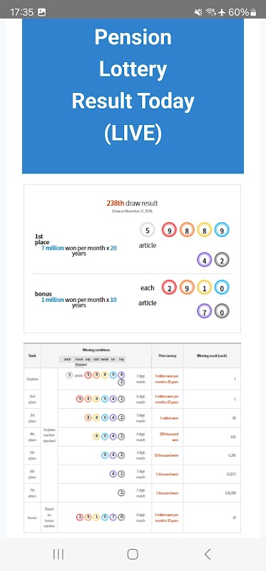 لوٹو 6/45 نتیجہ اور پنشن لاٹری کا نتیجہ ایک ایپ میں: کوریا لاٹری کے نتائج