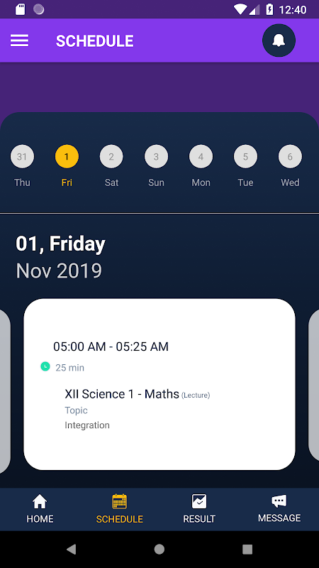 * View schedules for upcoming test and lectures.