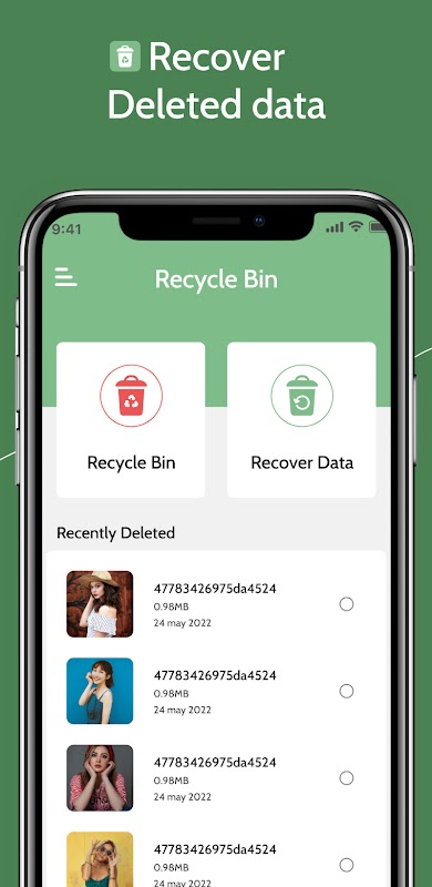 ری سائیکل بن ان تمام اقسام کی فائلوں کے لیے بازیافت کا آلہ ہے جو حال ہی میں یا ماضی میں حذف کی گئی ہیں۔ اس فائلز ریکوری ایپ کی مدد سے صارفین ڈیلیٹ کی گئی فائلوں کے بارے میں کبھی پریشان نہیں ہوں گے۔ اس ری سائیکل بن ایپ کو اپنے فون میں کمپیوٹر کے کوڑے دان کے خانے کے طور پر رکھیں، فائلیں حذف کریں، اور انہیں فوری طور پر بحال کریں۔