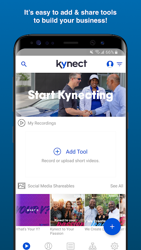 With the Kynect Share app, you can easily share your way to success with tools that create word-of-mouth buzz and complement belly-to-belly efforts. Connect with new prospects by sharing powerful, Kynect approved content with a tap. You’ll have a vast array of videos, flyers, social media images, and more—all right at your fingertips! The powerful, yet beautifully simple design, along with compelling tools, makes growing your business simpler than ever.