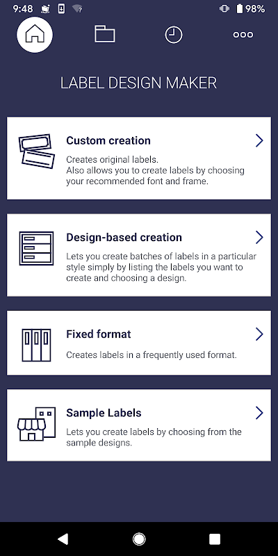 LABEL DESIGN MAKER ایک ایسی ایپلی کیشن ہے جو CASIO LABEL PRINTER سے جڑتی ہے تاکہ آپ اپنے اسمارٹ فون پر بنائے گئے لیبل پرنٹ کر سکیں۔