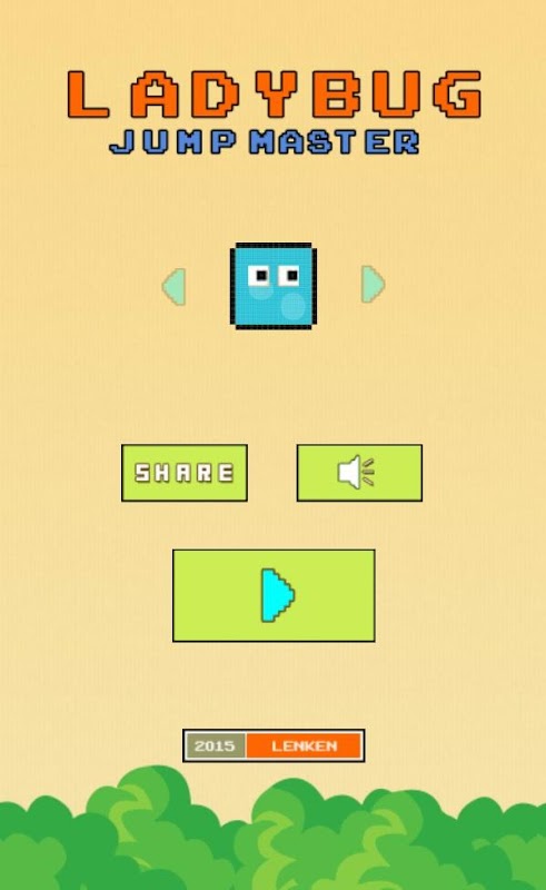 Tap the screen to help the ladybug jump up to the sky as high as you can. There are 4 ladybugs: Yellow, Orgrane, Blue, Green. While playing, try to get lot of red heart and remember avoid yellow triangles. Your can share your best score with you friends through Social Networks, Email, Photo,... Ladybug is not hard to play but isn't easy, it challenges your ingenuity and your patience.