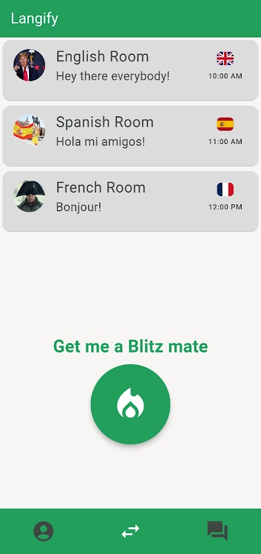 دستیاب زبانیں: انگریزی، ہسپانوی اور فرانسیسی کو دریافت اور مشق کریں۔ Langiy ان مقبول زبانوں کو سپورٹ کرتا ہے، جو آپ کے لیے بات چیت کے شراکت داروں کو تلاش کرنا آسان بناتا ہے۔