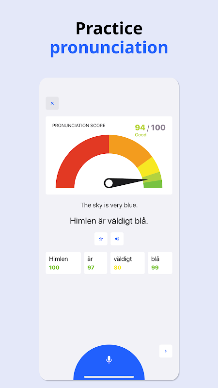 تلفظ کی مشق کریں - اپنی آواز ریکارڈ کریں، فوری تاثرات حاصل کریں، اور اپنے لہجے کو بہتر بنائیں۔
