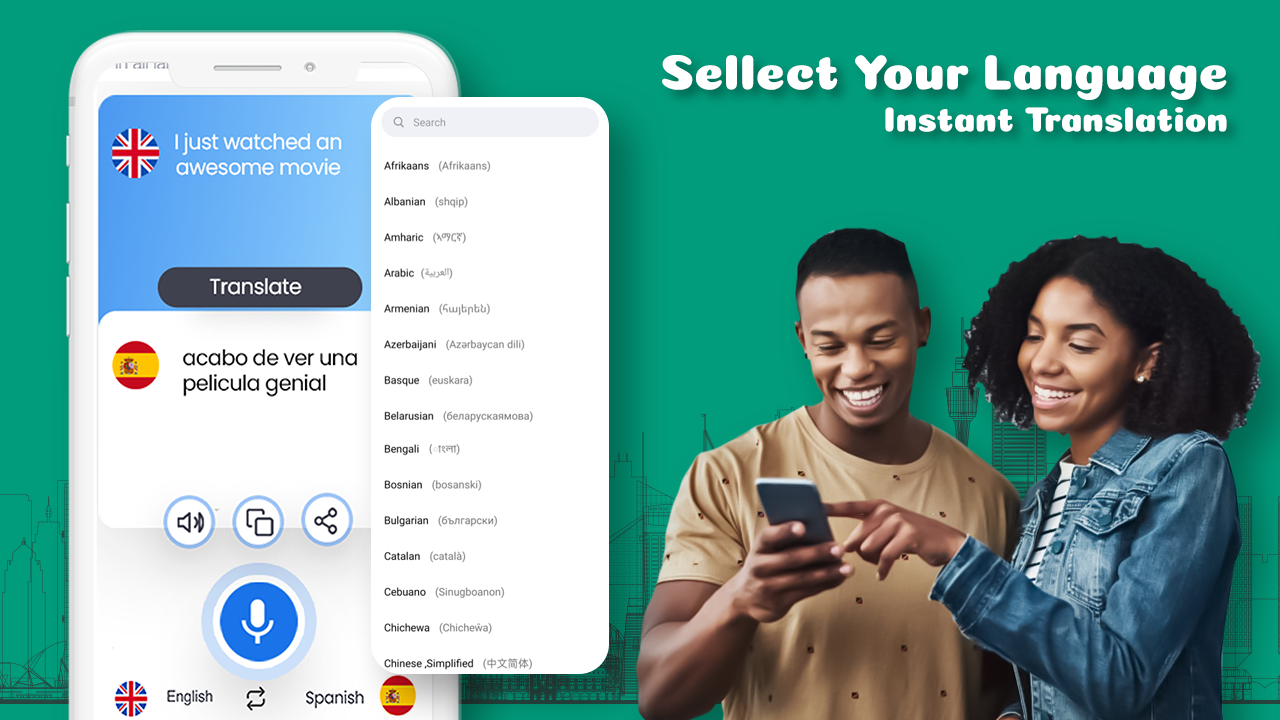 تمام زبانوں میں اسپیک ٹو ٹرانسلیٹ ایپ جسے زبان سیکھنے والی ایپ بھی کہا جاتا ہے ایک دو لسانی بات چیت کا انٹرفیس ہے۔ وائس ٹو وائس ٹرانسلیشن ایپ کی خصوصیت آپ کو ایک دوسرے کی زبان میں بات کرنے کی اجازت دیتی ہے جب کسی غیر ملکی کے ساتھ ون آن ون بات ہوتی ہے۔