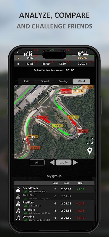 ∙ رفتار، ایکسلریشن اور بریک زونز کا گود میں موازنہ کریں۔