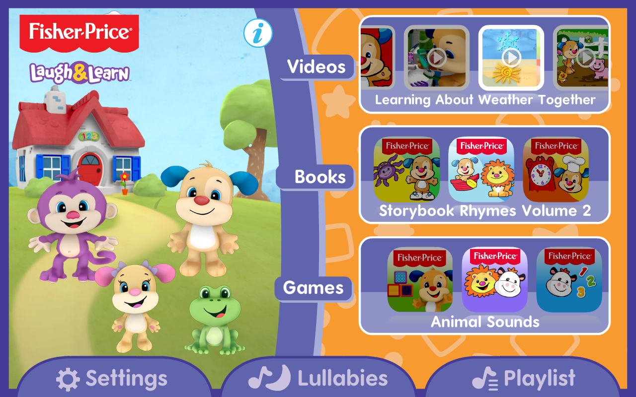 With Puppy’s Player app, baby can watch and interact with their favorite Laugh & Learn™ characters as they come to life! The baby-friendly interface makes it easy for mom and baby to find and select entertaining & educational videos, books and apps from Laugh & Learn! Teach baby all about letters, numbers, colors, shapes, animals, opposites, body parts and more!