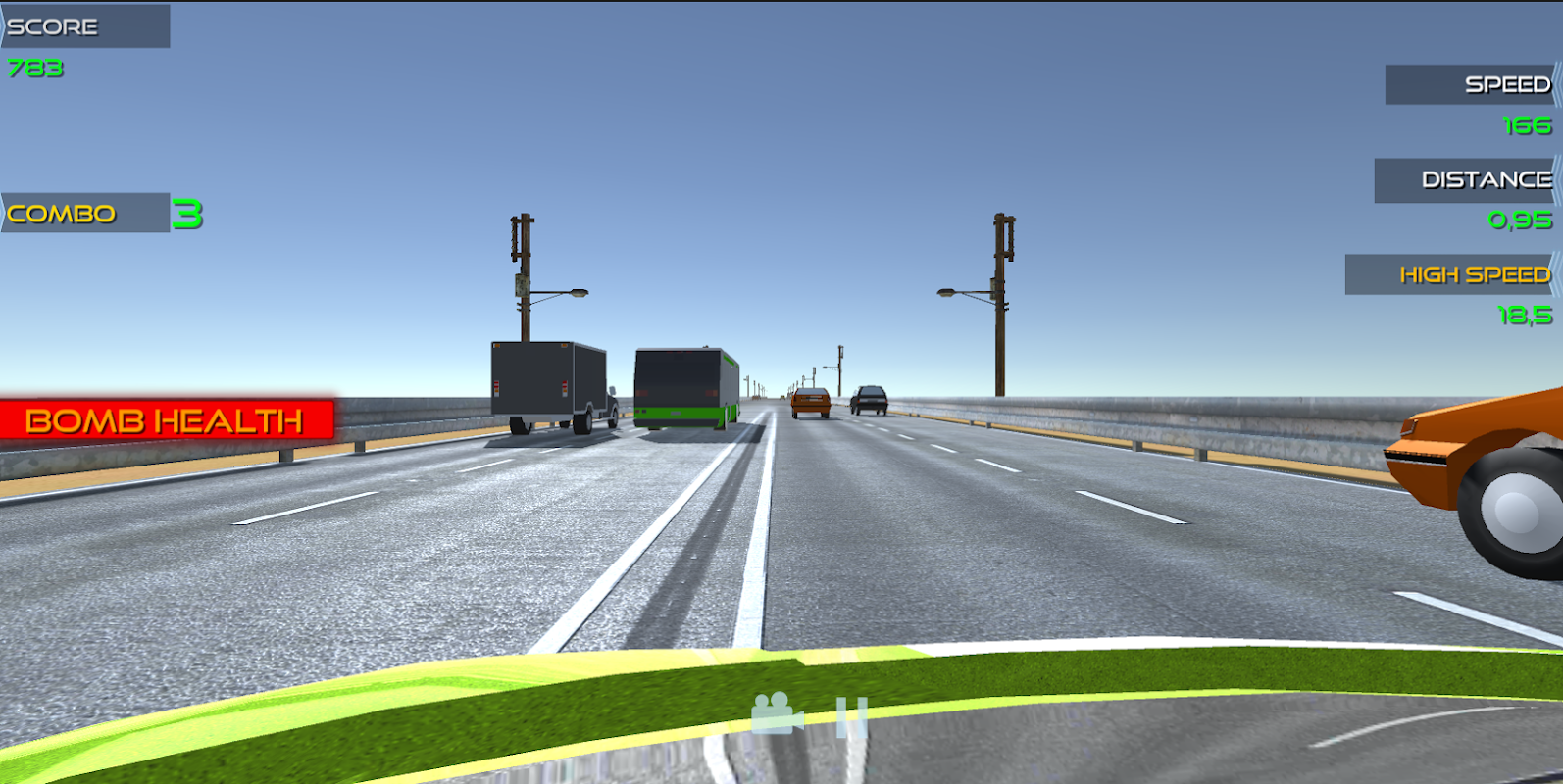 - Overtake cars at a high speed of 100 km/h or more to get bonus points and cash