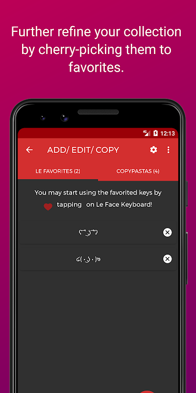 لی فیس کی بورڈ کے ساتھ اپنی تخلیقی صلاحیتوں کو اجاگر کریں! معیاری emojis سے آگے بڑھیں اور kaomoji، ٹیکسٹ چہروں، ASCII آرٹ، علامتوں، کاپی پاستا، اور اکثر استعمال ہونے والے فقروں کا اپنا منفرد مجموعہ بنائیں۔ Le Face ایک طاقتور، انتہائی حسب ضرورت کی بورڈ ہے جو حتمی خود اظہار خیال کے لیے ڈیزائن کیا گیا ہے، جس میں صاف، تیز UI اور مضبوط کلیدی انتظام ہے۔