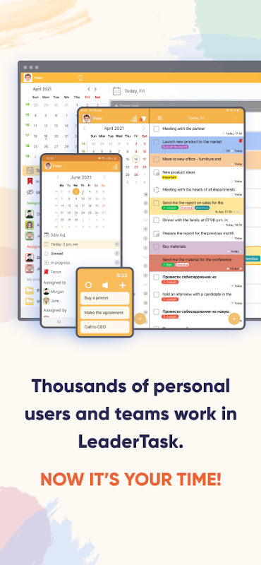 ہزاروں صارفین اور کاروبار اپنے اہداف کو حاصل کرنے اور پیداواری صلاحیت بڑھانے کے لیے ہر روز LeaderTask سروس کا استعمال کرتے ہیں۔