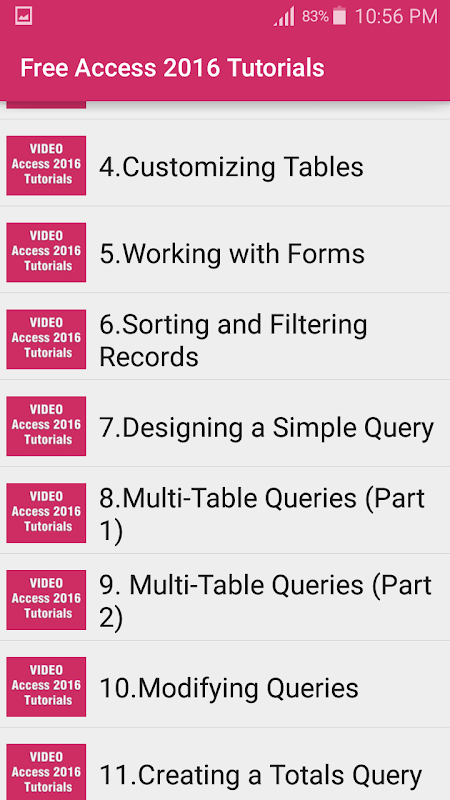 This app will guide you through the new features of MS Access 2016 to help you easily learn Ms Access and Practice any time.