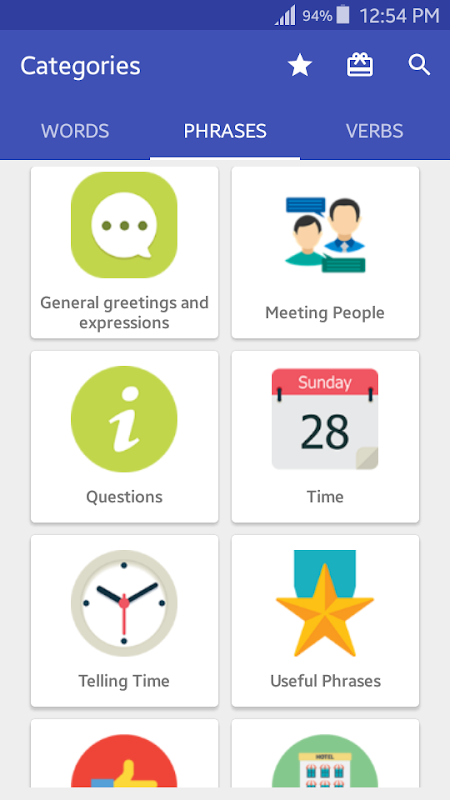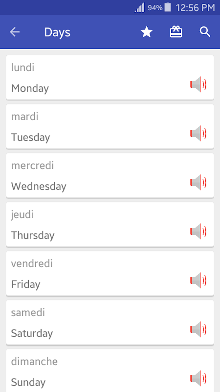 یہ ایپ کا سب سے اہم حصہ ہے اور ایک مخصوص عنوان کے لئے فرانسیسی الفاظ پر مشتمل ابواب کی فہرست کی نمائندگی کرتا ہے۔ ابواب میں فرانسیسی ذخیر purpose الفاظ کی ترتیب کے مطابق ترتیب دی گئی ہے تاکہ ان کی یاد کو کسی تعریف سے الگ کردیں۔ اب آپ ابتدائی لوگوں کے لئے فرانسیسی زبان سیکھنا شروع کرسکتے ہیں۔