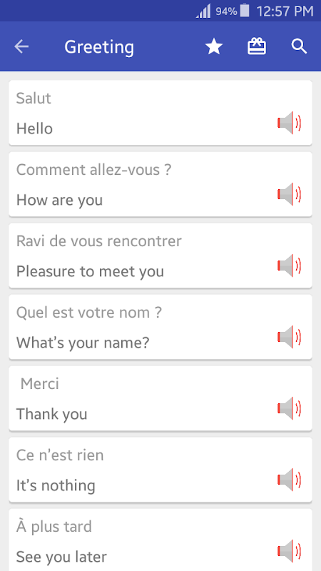 کے پرانے ورژن Learn and speak French Offline