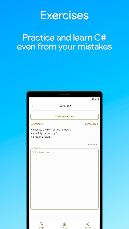 لرننگ سی # کو android ڈاؤن لوڈ ، کم سے کم 5.0 والے ٹیبلٹس کے ذریعہ بھی سپورٹ کیا جاتا ہے ، کم سے کم 4.3 انچ اسکرین والے آلات استعمال کرنے کی سفارش کی جاتی ہے ، پروگراموں کو بہتر پڑھنے اور سمجھنے کے لئے اسکرین کو گھمانے کی سفارش کی جاتی ہے۔