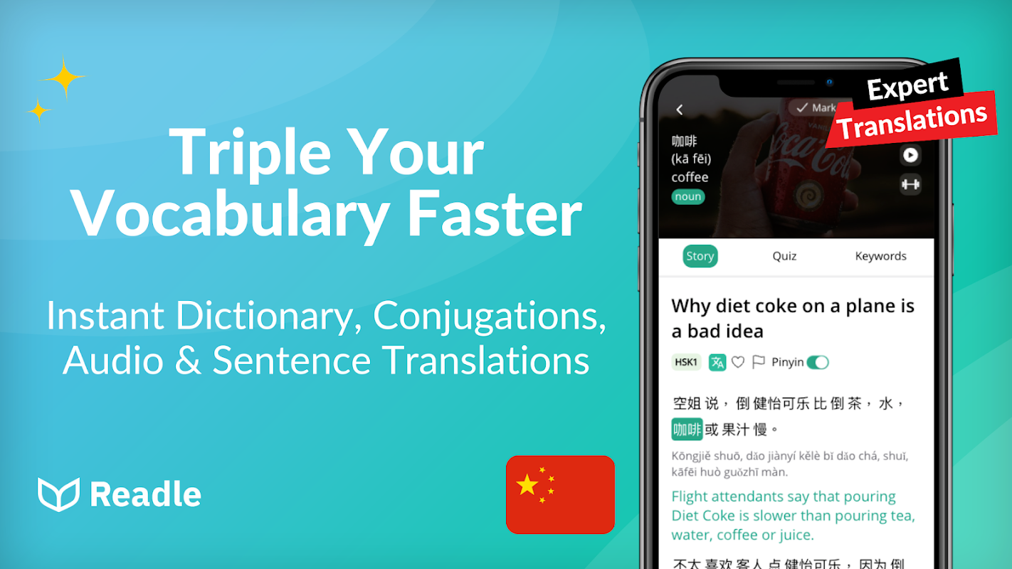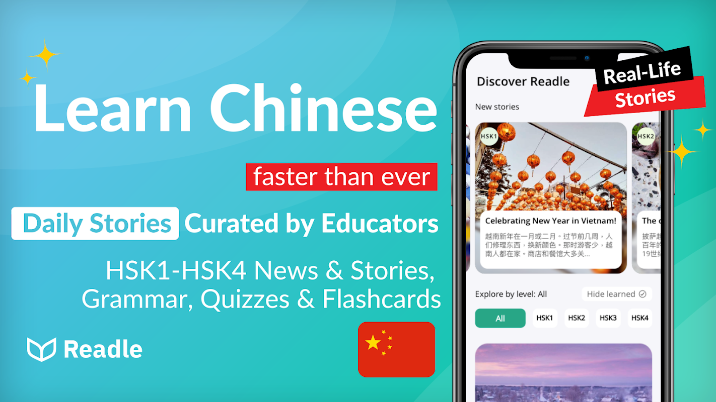 ریڈل کے ساتھ ماسٹر چینی، اعلی درجے کی زبان سیکھنے والی ایپ جو حقیقی دنیا کی مینڈارن چینی خبریں اور کہانیاں پیش کرتی ہے تاکہ آپ کی مہارتوں کو HSK1 کے ابتدائی سے HSK4 اعلی درجے تک بڑھانے میں مدد ملے۔ دن میں صرف 10 منٹ میں، آپ چینی الفاظ، پنین، گرائمر اور بہت کچھ سیکھ سکتے ہیں۔ چاہے آپ گفتگو، امتحانات، یا چین میں رہنے کے لیے اپنی مینڈارن چینی مہارتوں کو بڑھانا چاہتے ہیں، Readle اسے آسان بنا دیتا ہے!