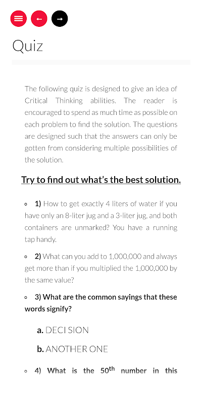 یہ مفت ایپ آپ کو تنقیدی سوچ کو صحیح طریقے سے سمجھنے میں مدد دے گی اور آپ کو یہ سکھائے گی کہ تنقیدی سوچ کا استعمال کرتے ہوئے مسائل سے کیسے لڑنا ہے۔ یہاں ہم تقریباً تمام حوالوں کا احاطہ کر رہے ہیں۔ ترتیب وار ٹیوٹوریل آپ کو بنیادی سے ایڈوانس لیول تک بتاتا ہے۔