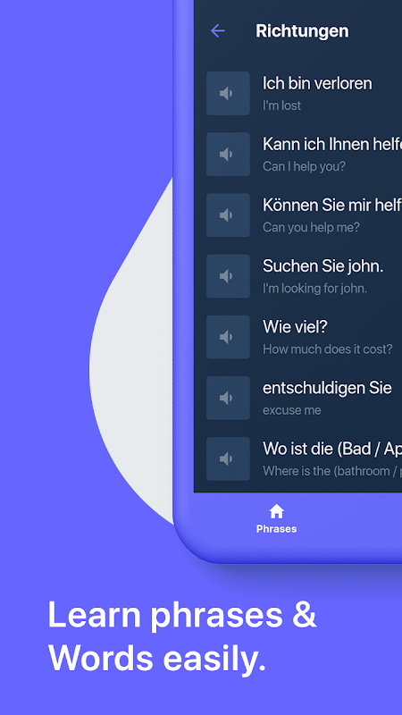 Learn English Offline: Speak fluently: is an android app to learn English phrases and words of various categories and from various base languages.