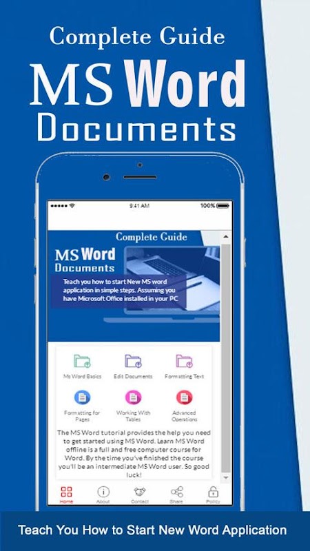 ایپلی کیشن آپ کو ایم ایس ورڈ کا استعمال شروع کرنے میں مدد فراہم کرتی ہے