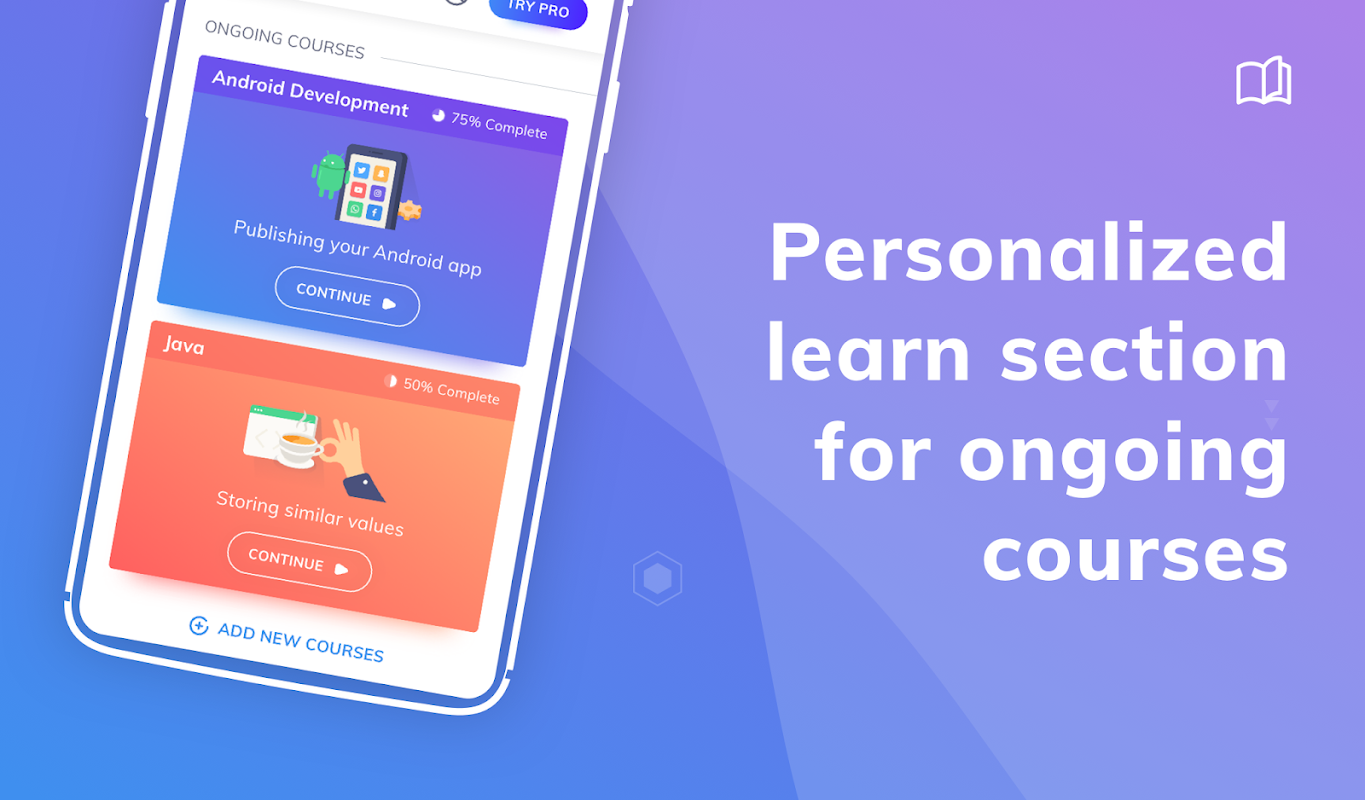 آپ اس تفریحی پروگرامنگ لرننگ ایپ پر کوڈنگ اور پروگرامنگ مثالوں کی مشق کرسکتے ہیں۔