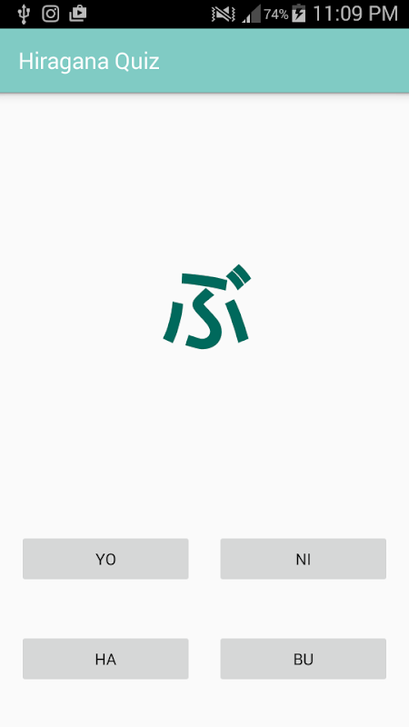 This is a simple Japanese learning app containing a list of Hiragana characters and their corresponding Romanji pronunciation. The app also contains a short multiple choice quiz and reading quiz to test your learning.