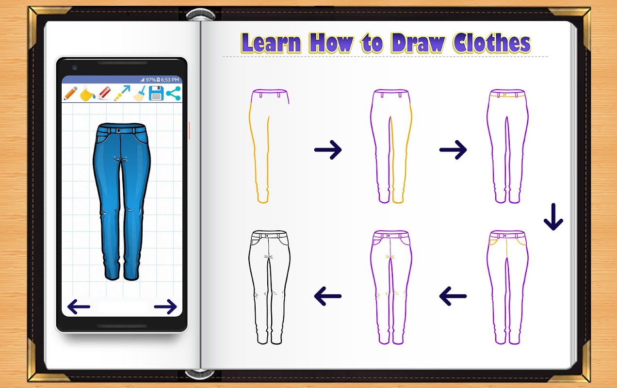 Fashion Clothes drawing and sketches application for kids will show you how to draw cloth and dress design with easy to follow, simple step by step drawing instructions. The following tutorial will guide you through the steps with easy geometric shapes, letters, and numbers.
