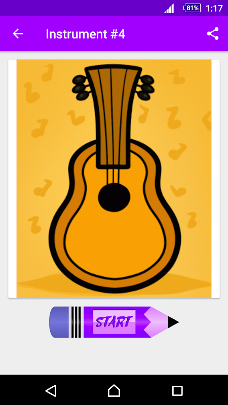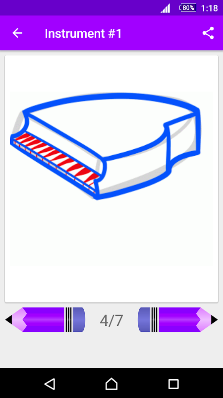 Our App provides a large collection of drawings including: Piano For Kids, Saxophone, Drums For Kids, Guitar for Kids, Clarinet, Harp, Trumpet, Ukulele, Viking Horn, Drums, Violin , Cello, Bass Guitar and Classic Guitar.