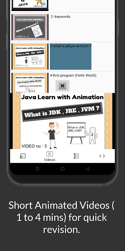 ★ Java Animation Videos Which helps Students to ( Learn Java ) clear their concepts .