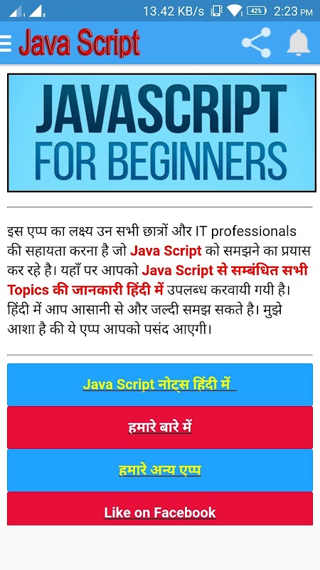 Learn Java Script in Hindi, हिंदी में सीखे APK معلومات