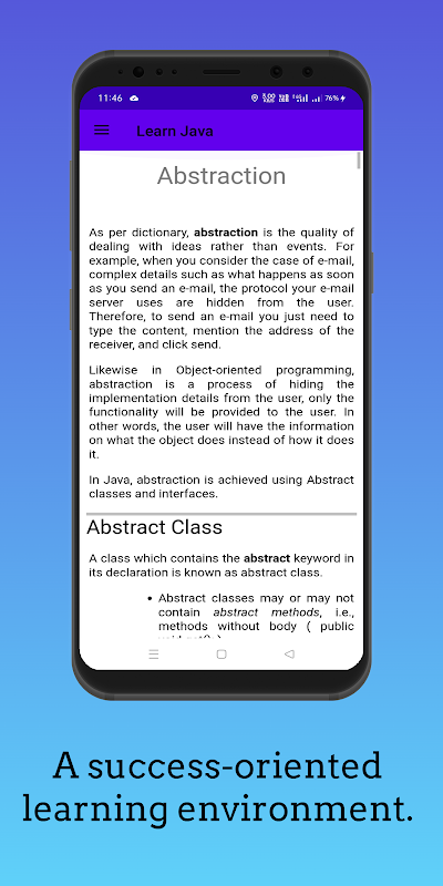 Java is a high-level programming language originally developed by Sun Microsystems and released in 1995. Java runs on a variety of platforms, such as Windows, Mac OS, and the various versions of UNIX. This app gives a complete understanding of Java. This reference will take you through simple and practical approaches while learning Java Programming language.