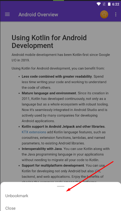 5. مضامین کو بک مارک کریں۔ آپ ان مضامین کو بک مارک کر سکتے ہیں جو آپ پڑھ رہے ہیں تاکہ آپ اگلی بار ایپ کو دوبارہ استعمال کرنے پر جاری رکھ سکیں۔