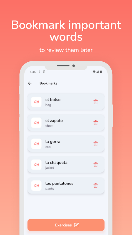 Mova انگریزی، جرمن، ہسپانوی، اطالوی، فرانسیسی، پرتگالی، یوکرینی، چینی، چیک یا پولش کی حمایت کرتا ہے۔ اس میں مشکل کے لحاظ سے 3000 سے زیادہ عام الفاظ شامل ہیں۔ ہر سطح میں آپ کو نئے الفاظ حفظ کرنے میں مدد کرنے کے لیے انٹرایکٹو مشقیں ہوتی ہیں۔ اگر آپ کو کچھ مشقیں پسند نہیں ہیں، تو آپ انہیں سیٹنگز میں بند کر سکتے ہیں۔ اگر آپ کو کچھ الفاظ میں پریشانی ہے تو آپ انہیں اپنے بُک مارکس میں شامل کر سکتے ہیں۔