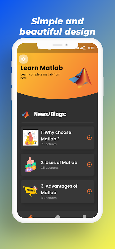 ایپ کو خاص طور پر ہر قسم کے طلباء کے لیے ڈیزائن کیا گیا ہے۔ Matlab ایپ طلباء کے لیے لیکچرز کو آگے بڑھانے کے لیے ابتدائی پر مشتمل ہے۔ کوڈ کے لیے ایک کمپائلر بھی ہے۔ مکمل ایپ ٹیوٹوریلز پر مشتمل ہے جو ان کی پڑھائی میں ان کی مدد کرے گی۔ سیکھنے کو مکمل کرنے کے بعد آپ اپنے آپ کو ایک میٹلیب پروگرامر پائیں گے۔
