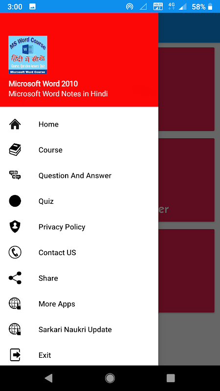 Many websites posting about download free pdf ebooks of ms word notes in hindi but after reading there content you will be redirect on there sales page and they sell these ebooks. but this app provide you all ms word basics courses in hindi notes ms word question and answer for free in single app.