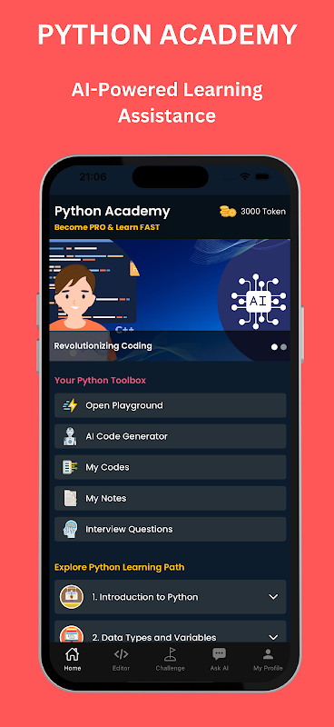 Python Academy: Learn Python with AI کو ڈیزائن کیا گیا ہے تاکہ کوڈنگ کو قابل رسائی، انٹرایکٹو، اور ہر ایک کے لیے لطف اندوز کیا جا سکے۔ چاہے آپ ایپس بنانے، خودکار کاموں، یا ٹیک میں کیریئر بنانے کا خواب دیکھتے ہوں، یہ ایپ آپ کی کامیابی کا گیٹ وے ہے۔
