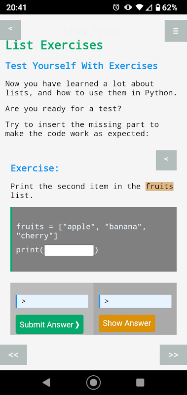 * چاہے آپ ازگر کے انٹرویو کی تیاری کر رہے ہوں یا کسی ایسے امتحان کی جس کے لیے python پروگرامنگ کا علم درکار ہو، آپ اس پروگرامنگ لرننگ ایپ پر حیرت انگیز مواد تلاش کر سکتے ہیں۔