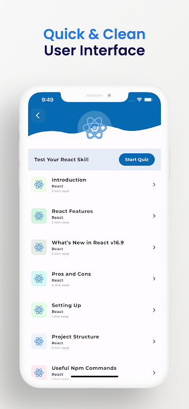 یہ ایپلیکیشن آپ کو رد learn عمل کو سیکھنے کے ساتھ ساتھ باآسانی آبائی رد easy عمل کو آسان بنانے کے ل. ہے۔ تمام سیکھنے کے سامان اچھی طرح سے منظم اور سمجھنے میں آسان ہیں۔ یہاں پر کوئی فرق نہیں پڑتا ہے کہ آپ ابتدائی ہیں یا کوڈنگ کے پچھلے تجربے کے ساتھ ، یہ ایپ آپ کو راحت بخش بنائے گی۔ لیکن اگر آپ جاوا اسکرپٹ کے ساتھ بالکل نئے ہیں تو آپ کو بنیادی جاوا اسکرپٹ سیکھنا چاہئے۔ بہتر مشق کے ل we ہم نے منفی پروجیکٹ کی کچھ نمونہ دی ہیں جن میں React js اور React Native ہے ، کیونکہ سیکھنے میں مشق لازمی ہے۔ دن کے اختتام پر ، یہ ایپ آپ کو React js یا React Native میں بہتر بنائے گی