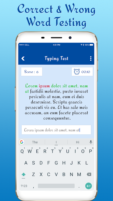 Learn Typing in Mobile - Typing Speed Master Test application will help you increase your typing speed and helps you become the fastest typer in the world.