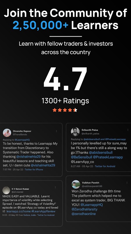 Learnapp پر کورسز کو ہر سطح کے افراد کو پورا کرنے کے لیے ڈیزائن کیا گیا ہے، ایسے نئے افراد سے لے کر جو ٹریڈنگ اور سرمایہ کاری کی دنیا میں نئے ہیں، تجربہ کار تاجروں اور سرمایہ کاروں تک جو اسٹاک مارکیٹوں میں خودکار تجارتی حکمت عملیوں کو تعینات کرنا چاہتے ہیں۔
