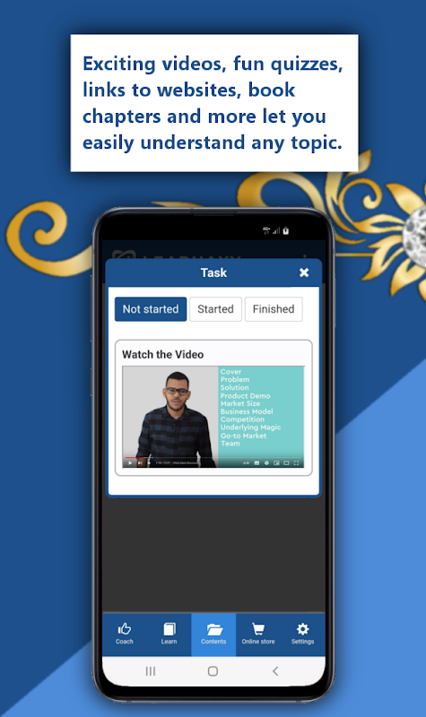 A digital learning coach guides you through the learning content and shows you what you can watch, read or learn every day.