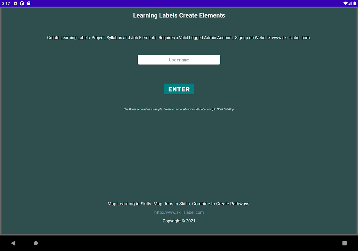 ایپلی کیشن کو استعمال کرنے کے ل a ، صارف کو ایک درست اکاؤنٹ کے ساتھ لاگ ان کرنے کی ضرورت ہے۔ فی الحال ، صارف مفت اکاؤنٹ کے لئے آن لائن اندراج کرسکتا ہے: www.skillslabel.com