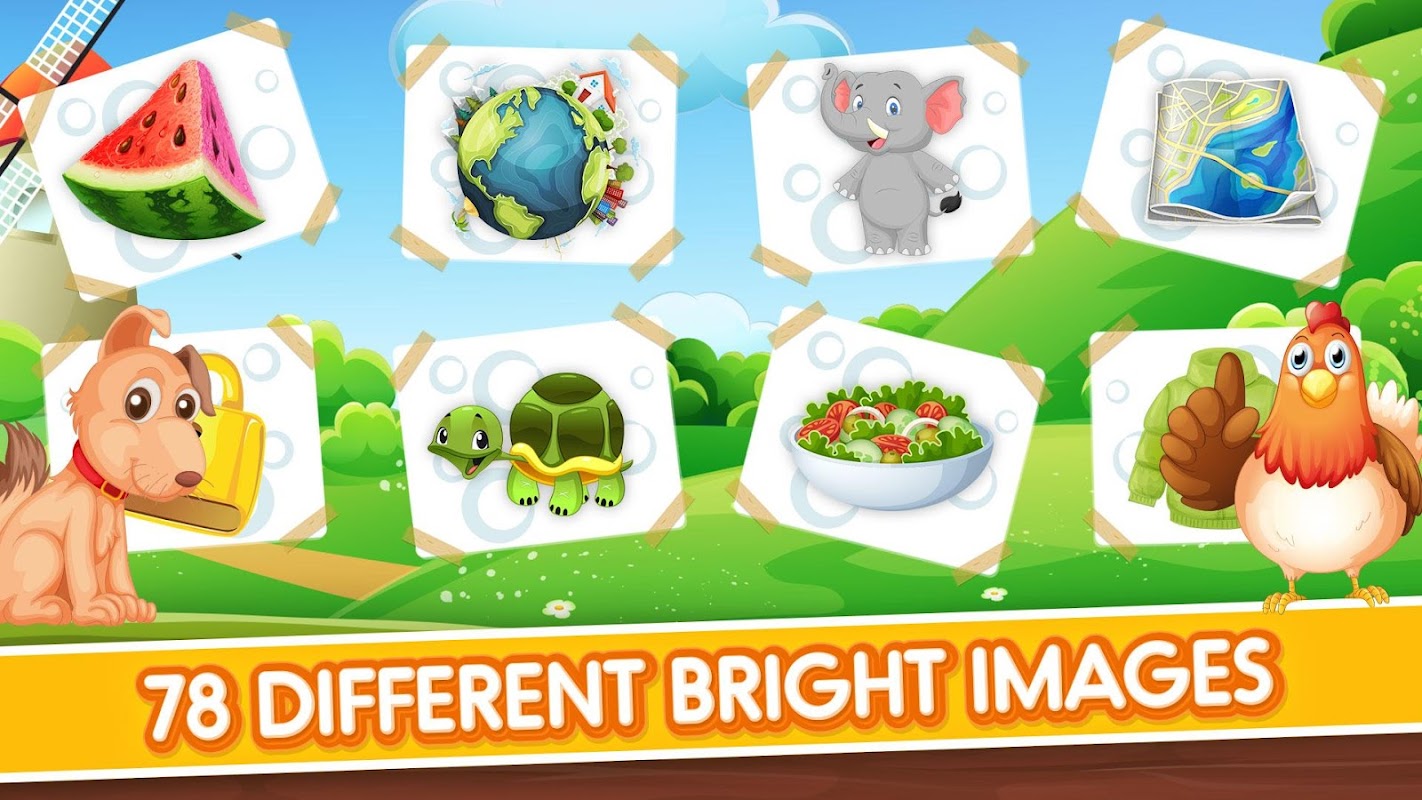 For each letter we prepared 3 images and words, you can open the additional 2 words/images so your child vocabulary will become rich.